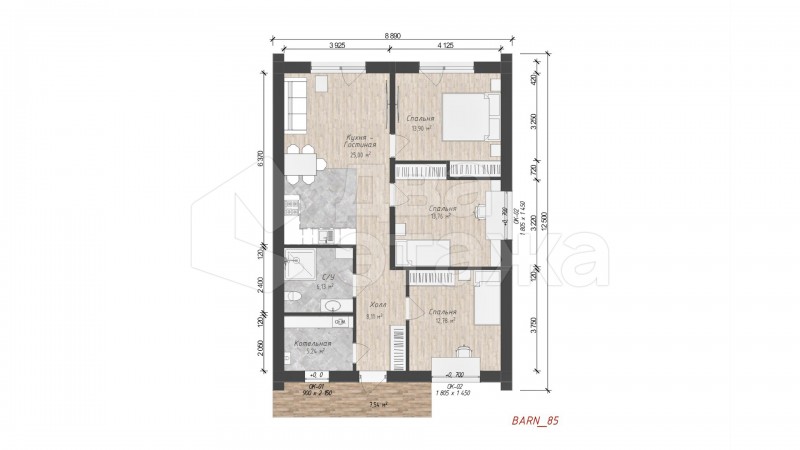 • Функциональность и простота планировки. Благодаря уникальной планировке дома, есть возможность расположить 2 или 3 комнаты, в зависимости от потребностей семьи.