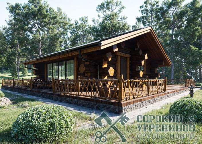 Проект сруба русской бани из бревна диаметром 300мм, общей площадью 34м2. Проект выполнен в русском стиле по классической технологии ручной рубки в обло. Баня имеет комнату отдыха, санузел, помывочную комнату и парную. Баня проектировалась по индивидуальному заказу для установки на понтоны, как плавучая баня, и совсем скоро она будет плавать по Саяношушенскому водохранилищу в горах Хакасии.